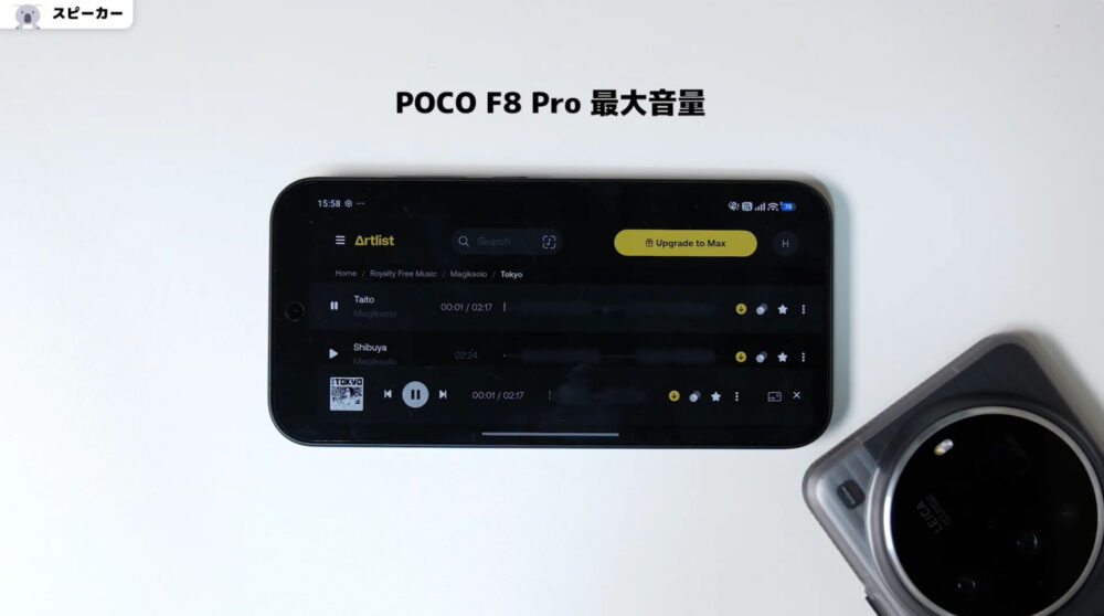 最大音量は、「Xiaomi 15 Ultra」よりもF8 Proのほうが大きいです。