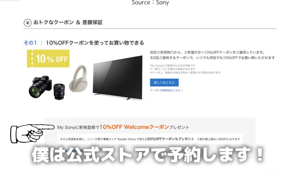 \My Sony に新規登録で10% OFF Welcomeクーポン/